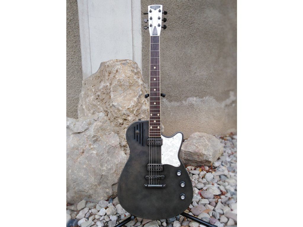 Hollow body is made from steel, Golden Era finish. Mahogany neck. Filtertron pickups, three way switch, volume, volume and tone pots. Middle output with very nice color.